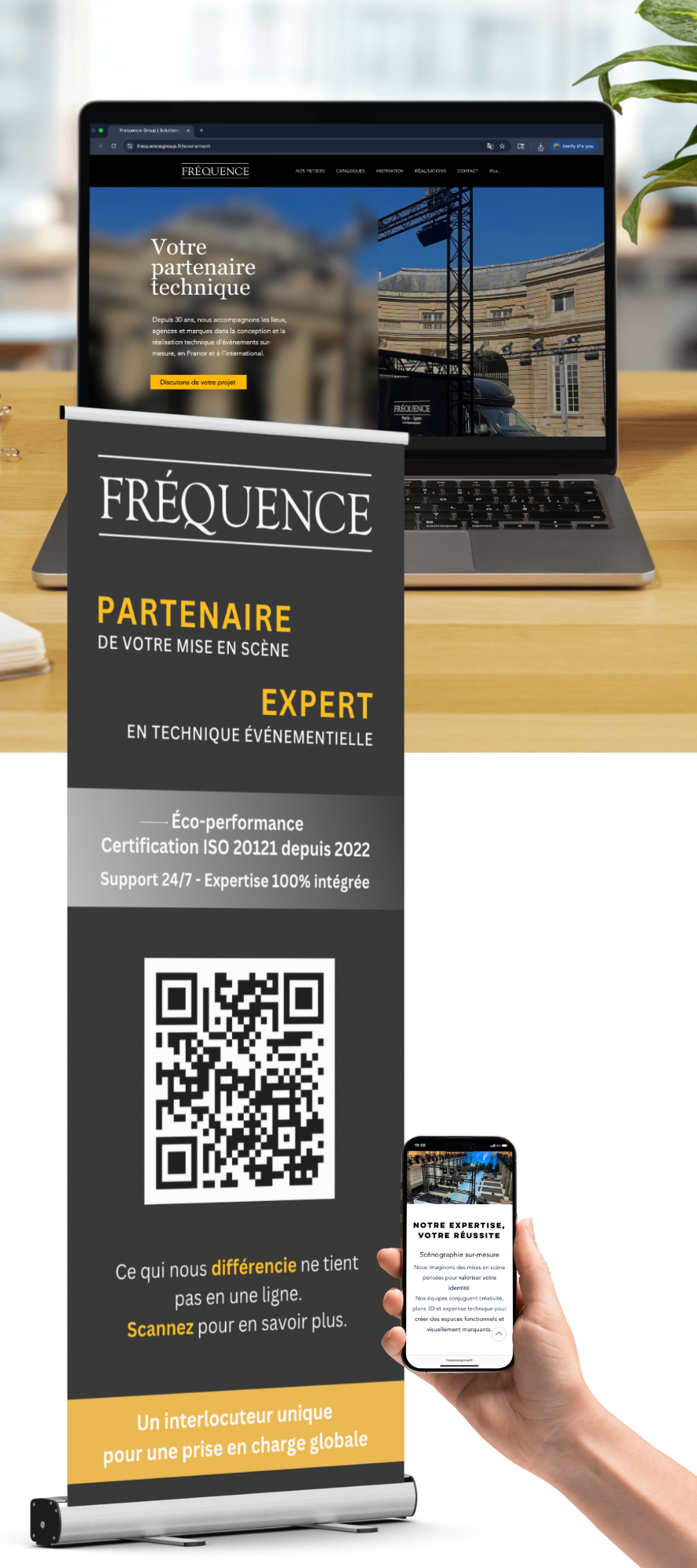 À l’approche d’un salon professionnel, 𝐅𝐫𝐞́𝐪𝐮𝐞𝐧𝐜𝐞 𝐆𝐫𝐨𝐮𝐩 nous a sollicité en urgence pour concevoir un kakemono impactant et activable.